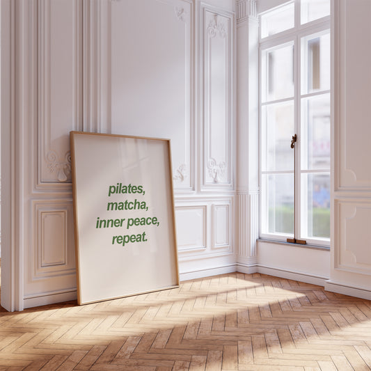 Pilates, Matcha, Inner Peace, Repeat Wall Art