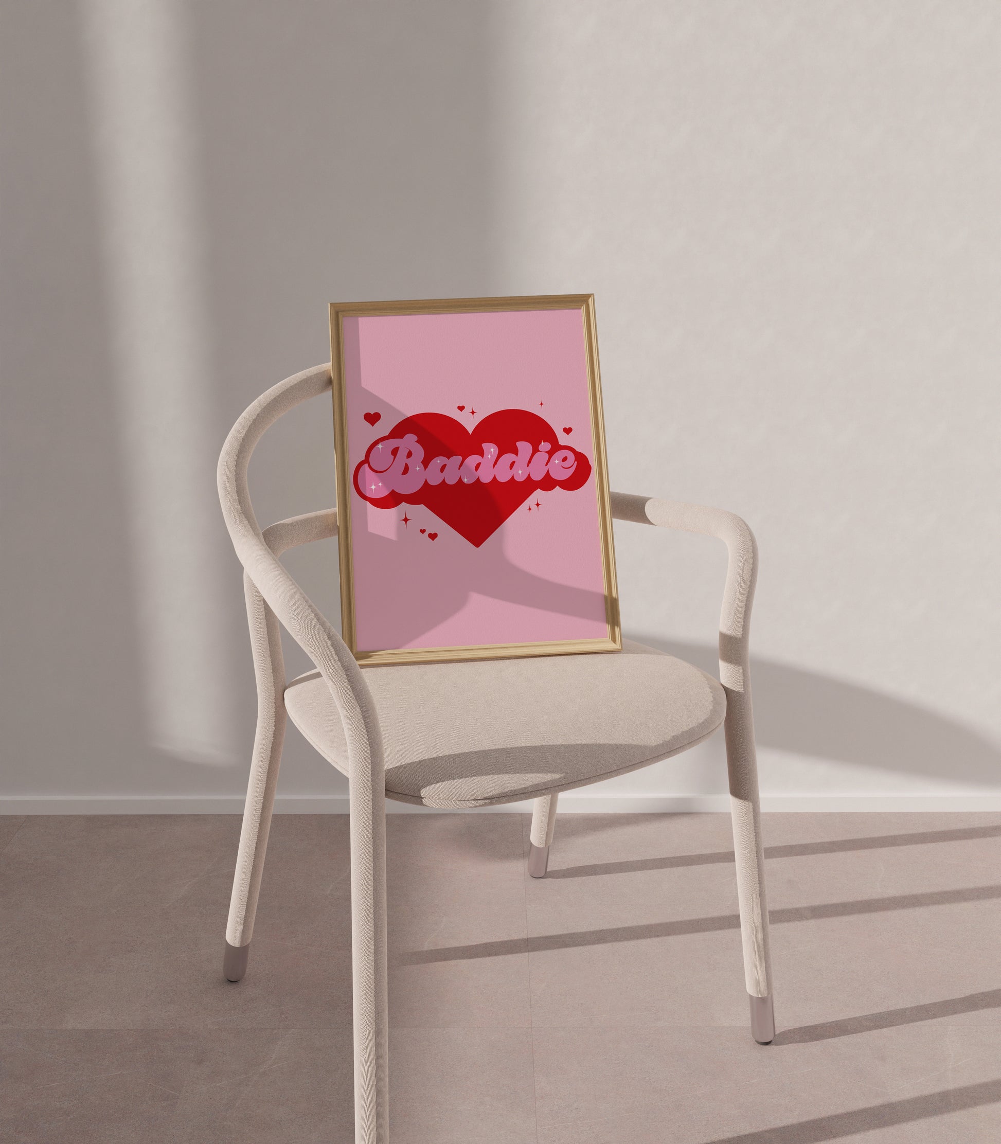 Transform your space with this vibrant pink and red bedroom wall art featuring a retro baddie design. This modern print is perfect for creating an eye-catching aesthetic in any room, whether it's your bedroom decor, college apartment decor, or even your home office.