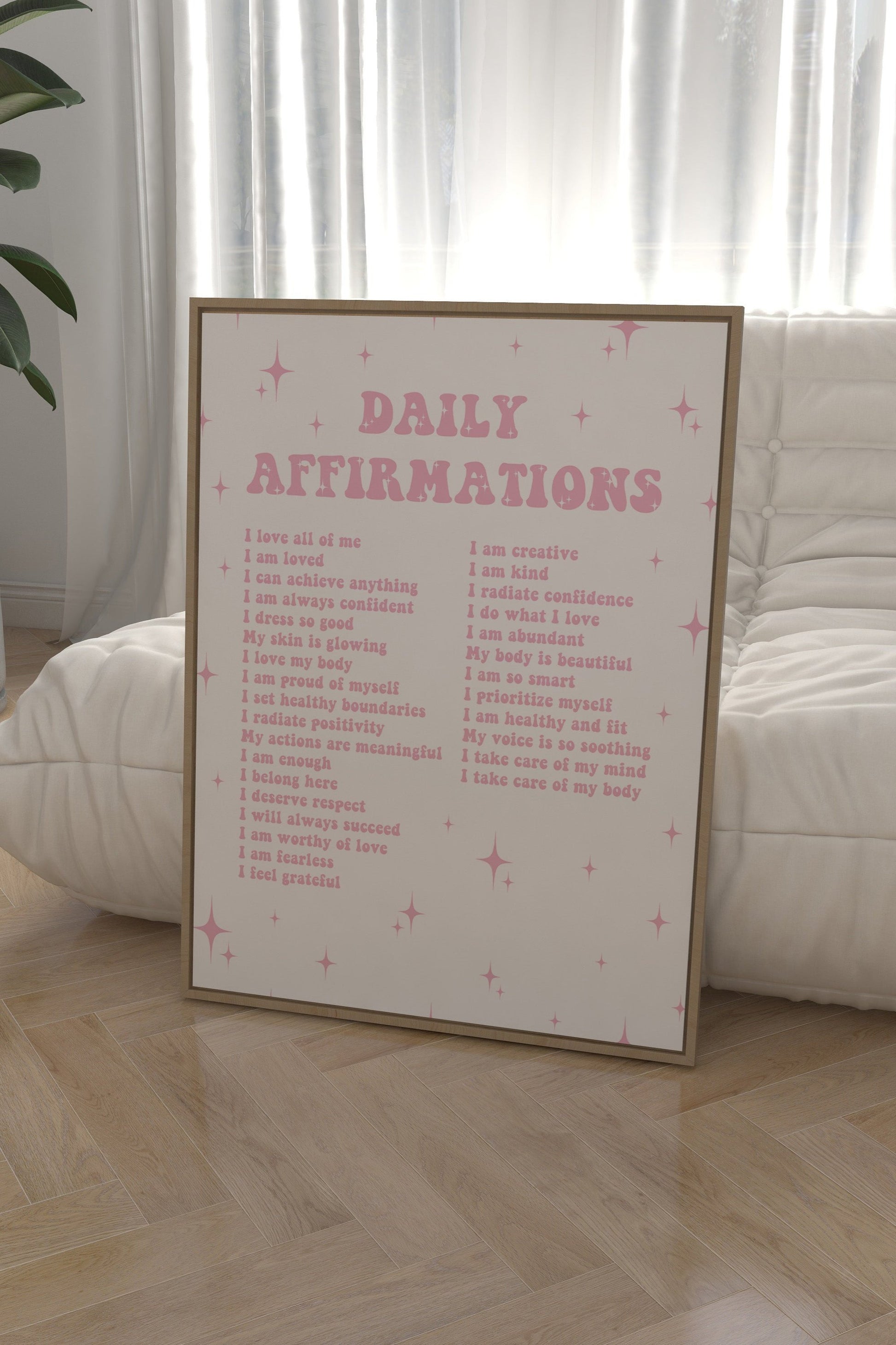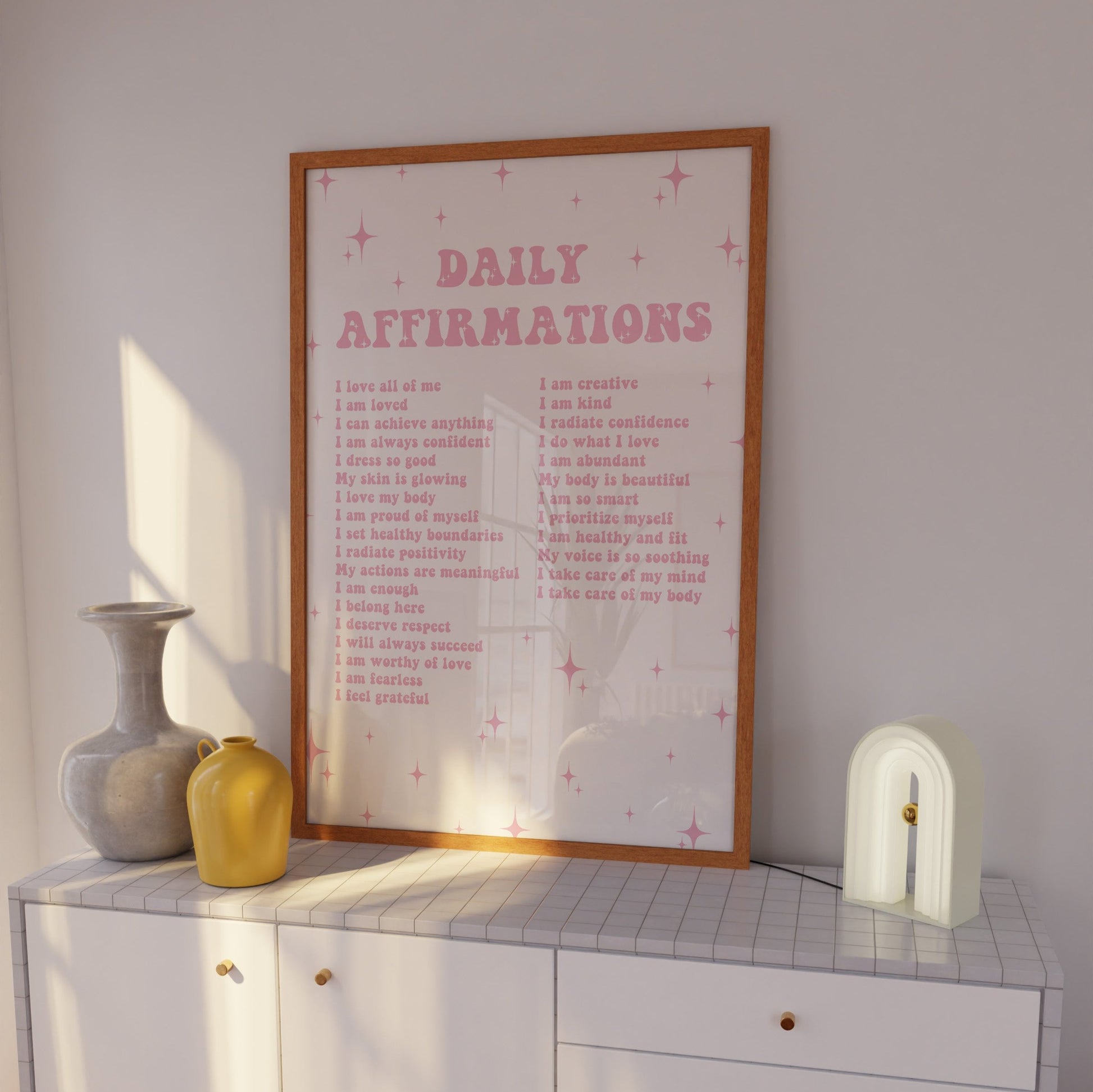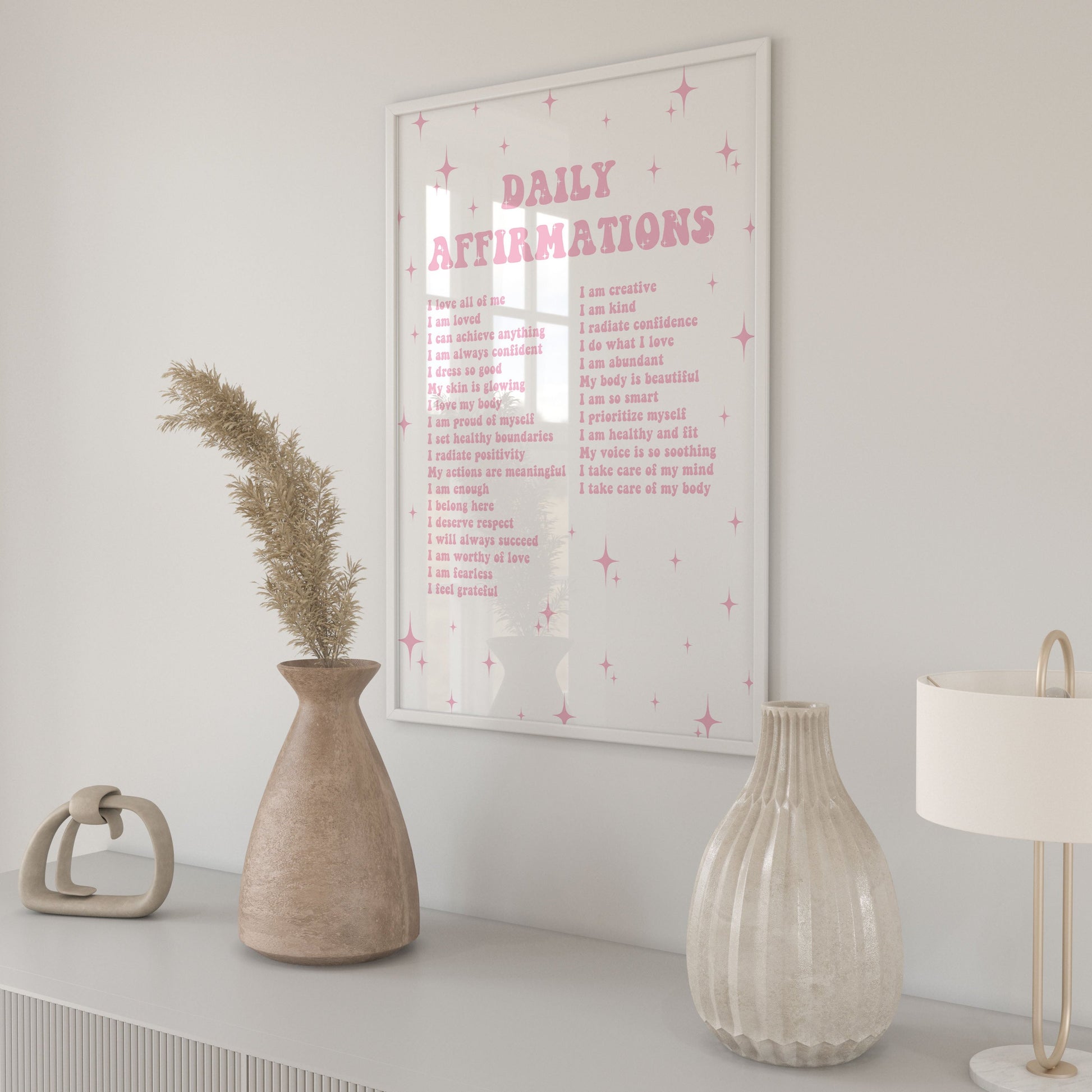 This Pink Daily Affirmations Wall Art is the perfect wall art decor.