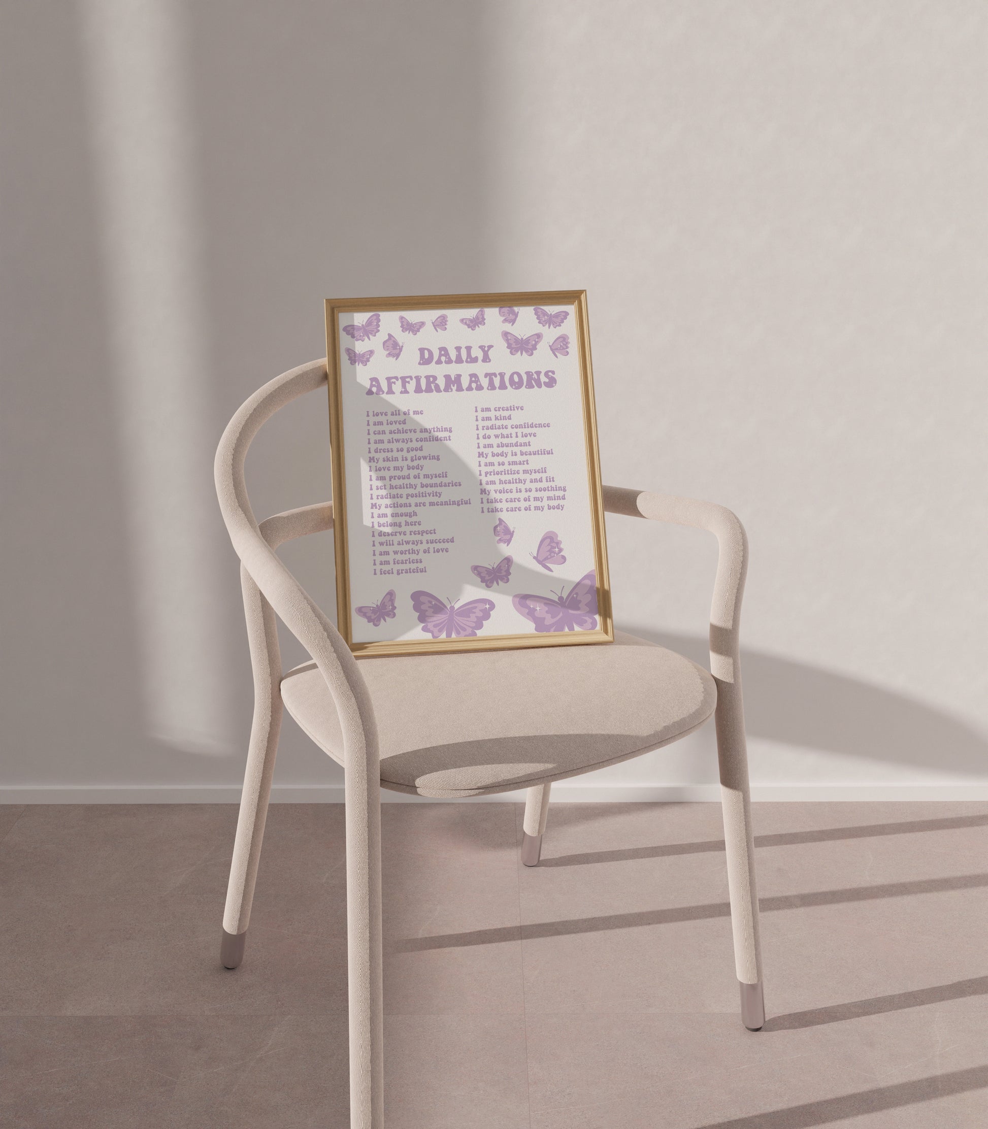 This Purple Daily Affirmations Wall Art is the perfect wall art decor for people who want to improve the quality of their life and become the best version of themselves. If you also love butterflies, that's a bonus!