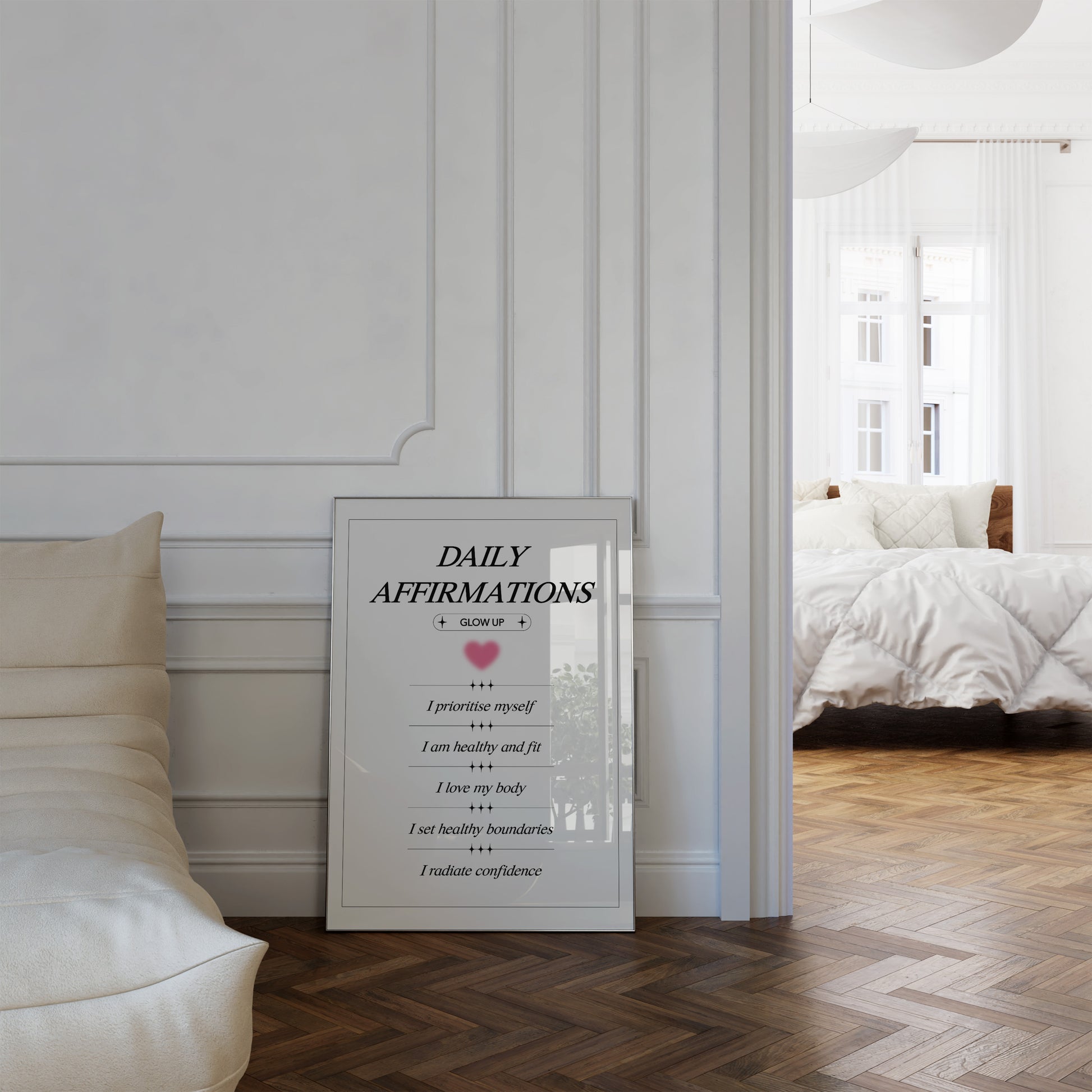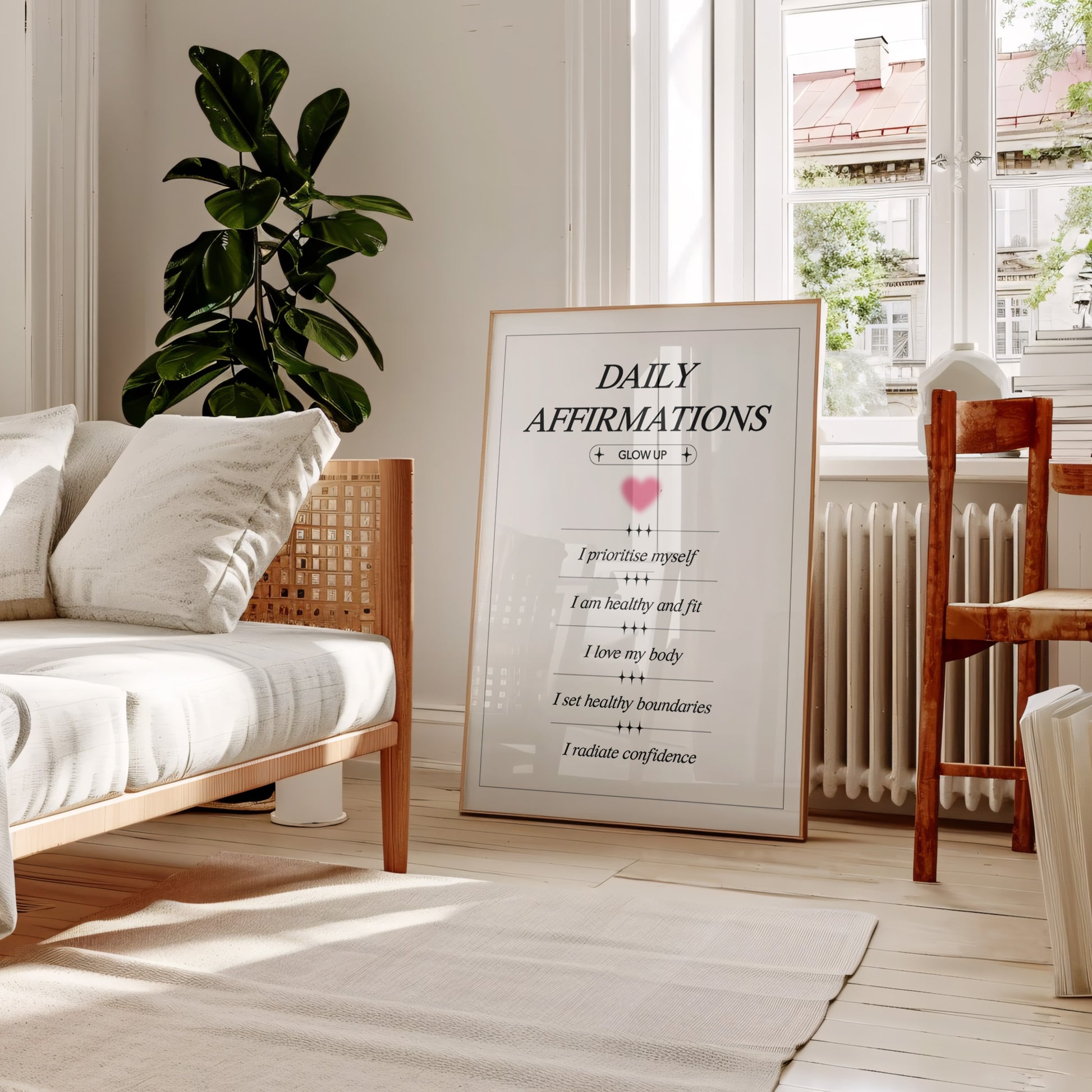 Transform your space with this Positive Daily Affirmations digital wall art! With its soft and elegant design and inspiring message of self affirmations, this print is perfect for adding confidence, self-love, self-worth, and style to any room. Ideal for bedrooms, living spaces, or office decor, this digital download is a soft reminder to embrace your uniqueness every day and love yourself.