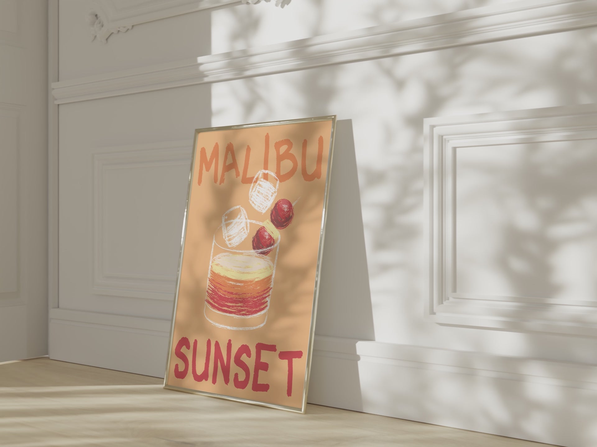 This Malibu Sunset Cocktail Wall Art is the perfect wall art decor.