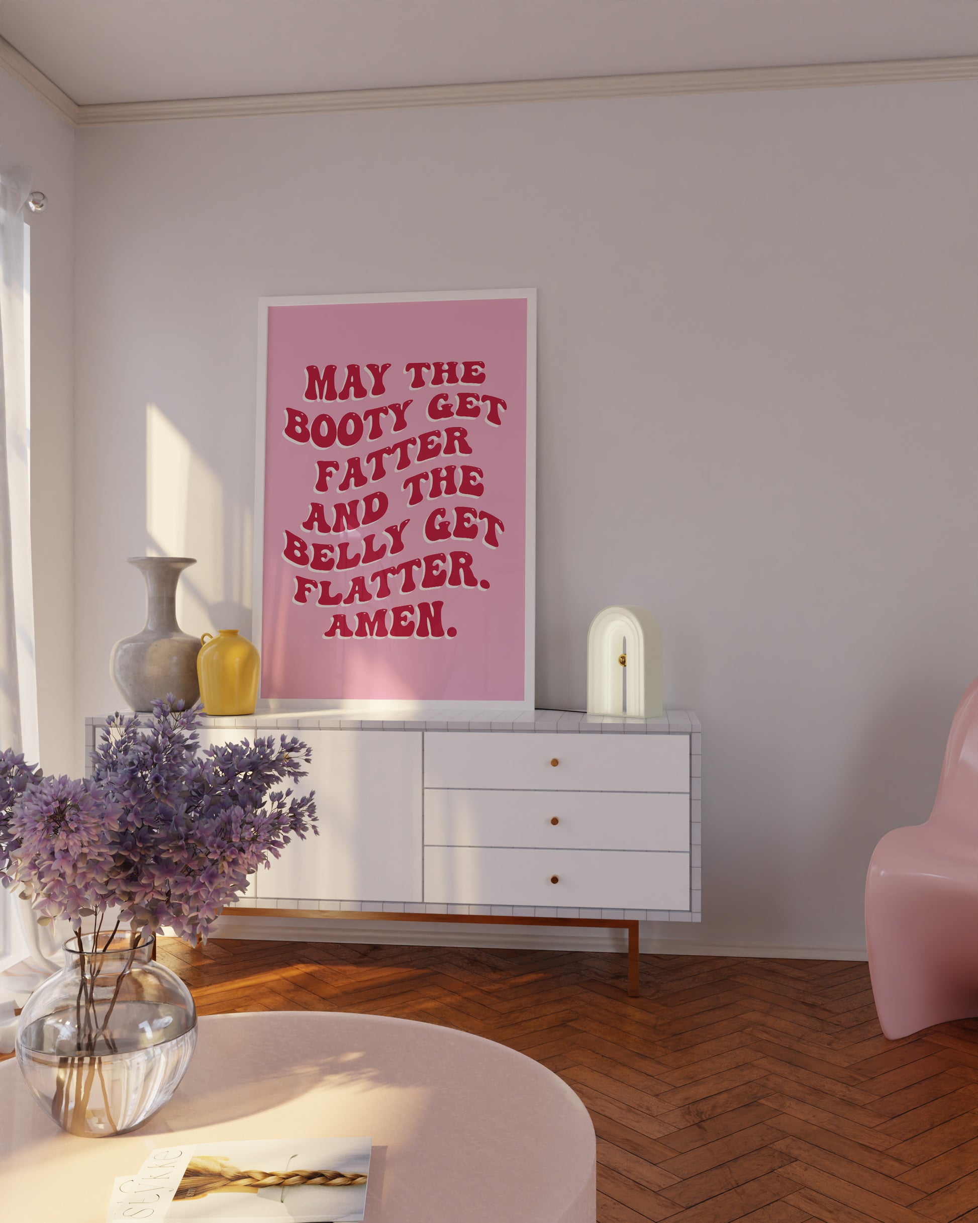 May The Booty Get Fatter And The Belly Get Flatter Pink and Red Wall Art
