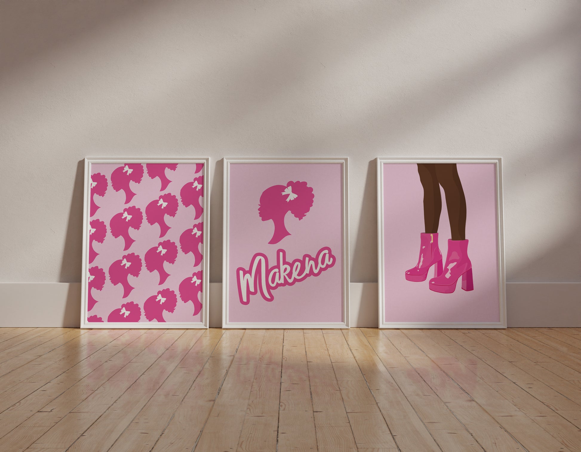 This is the perfect pink Afro Barbi bedroom decor, pink Afro Barbi dorm decor, custom Afro Barbi room decor, custom Afro Barbi name print. Treat yourself to this beautiful wall art to infuse your living space with confidence and the positive energy of bright pink!