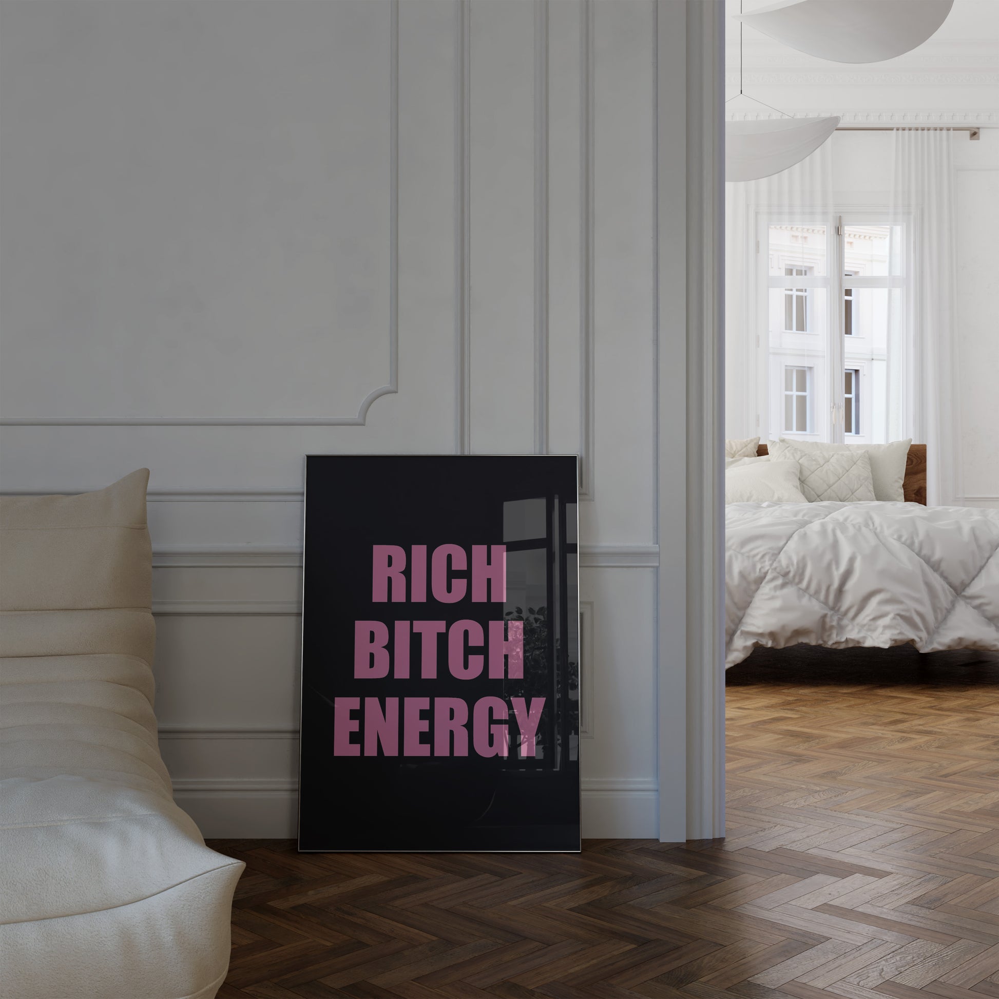 This Pink and Black Rich B*tch Energy Wall Art is the perfect wall art decor for girls who want to become THAT GIRL, and manifest financial freedom.