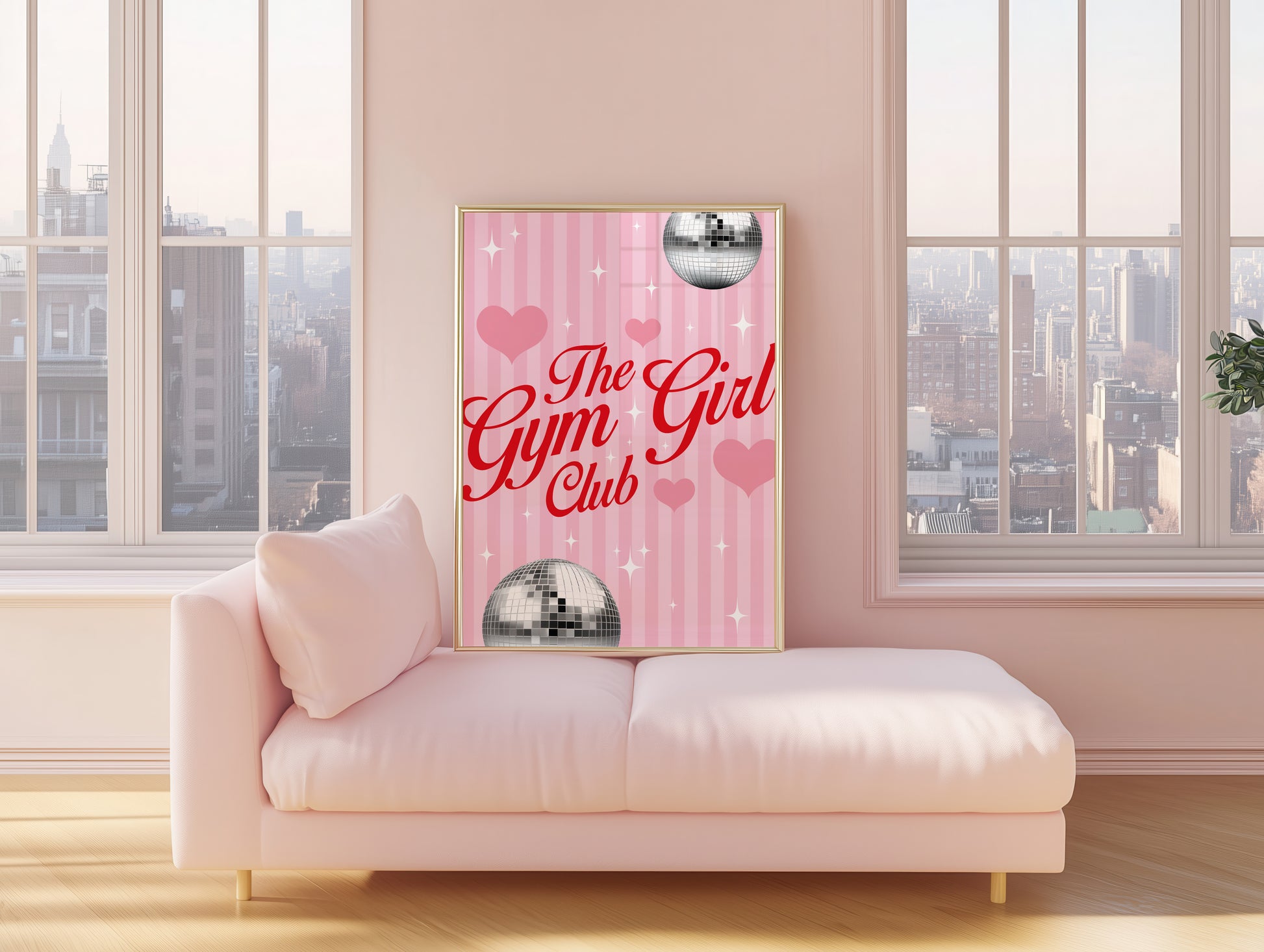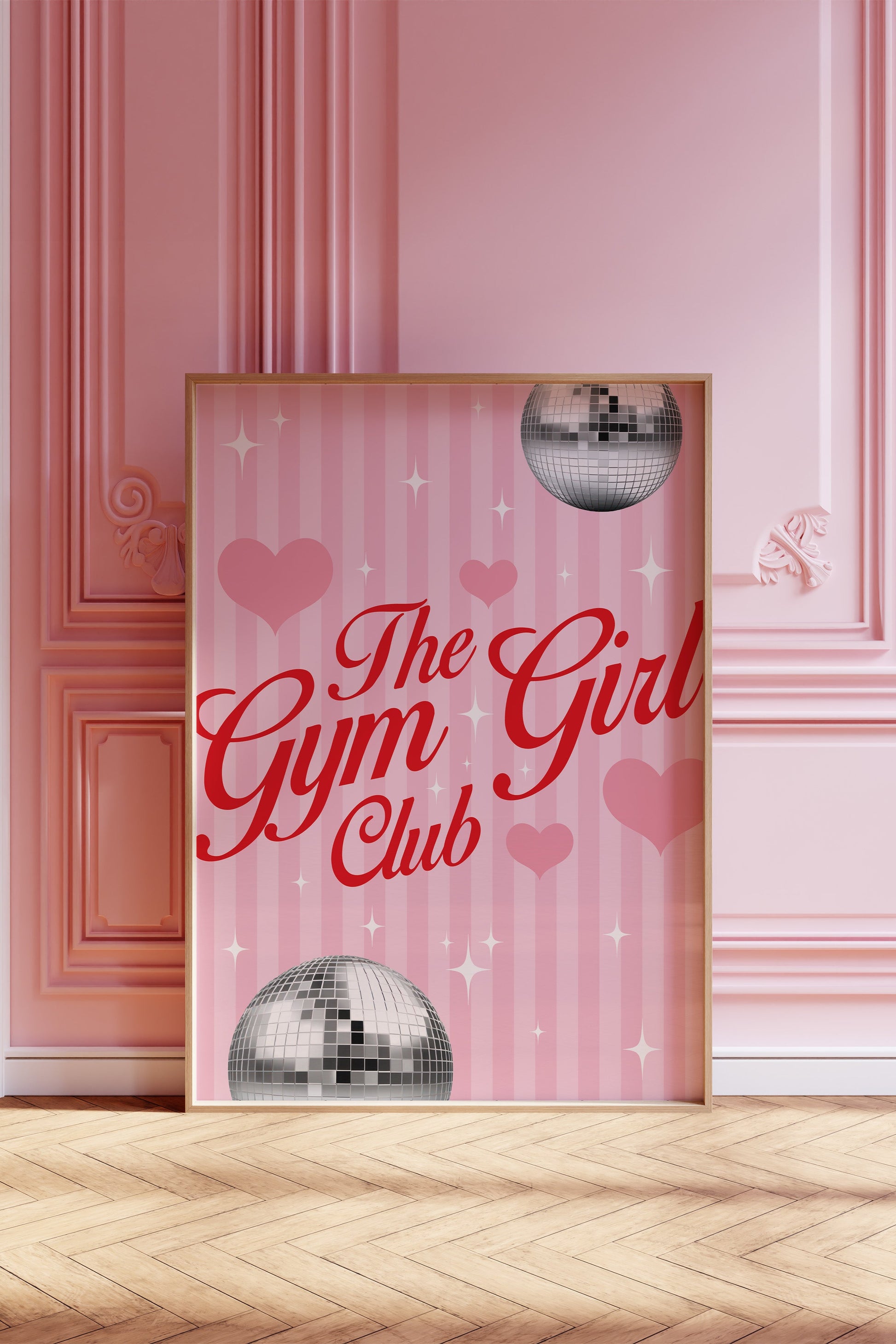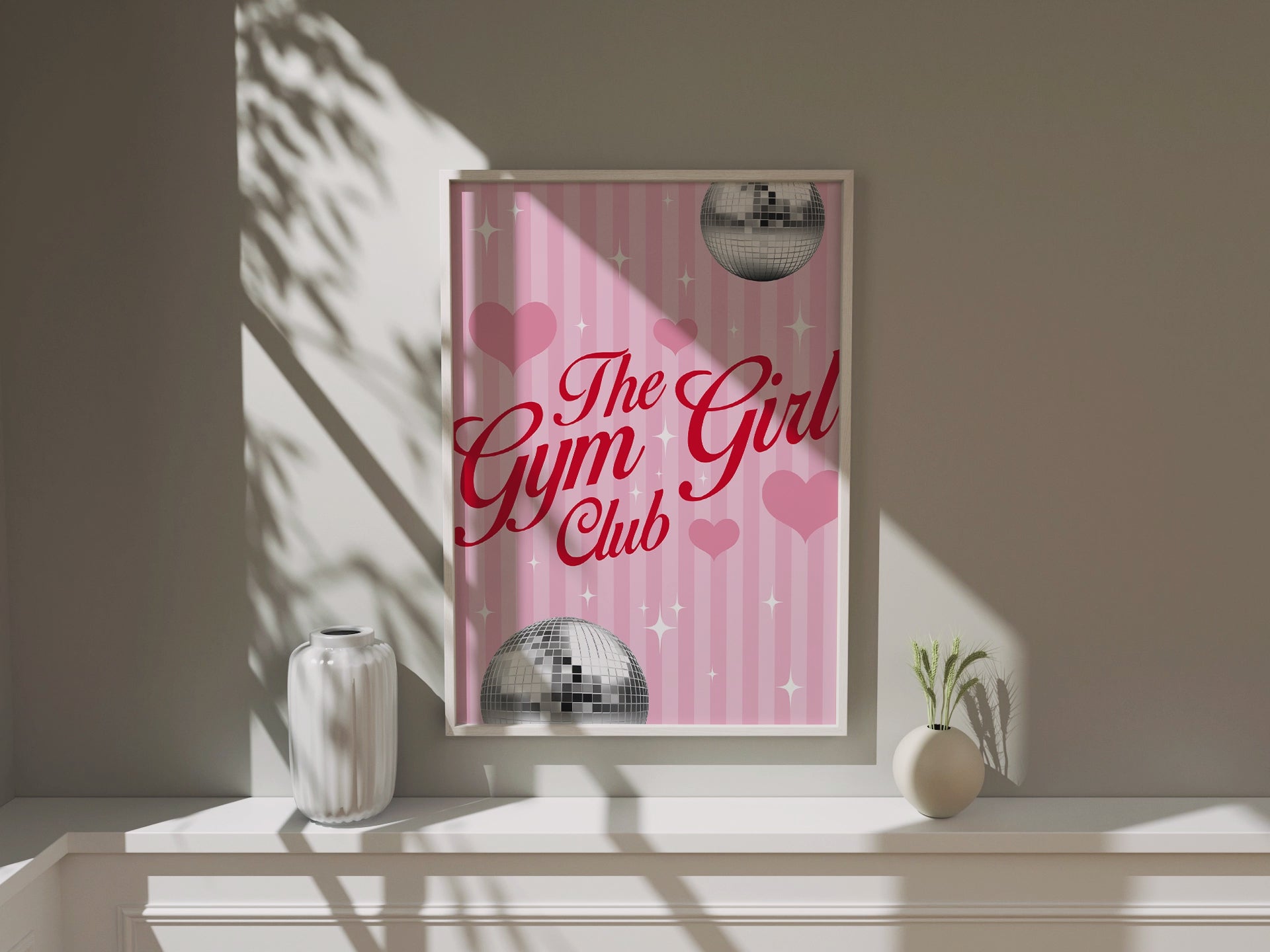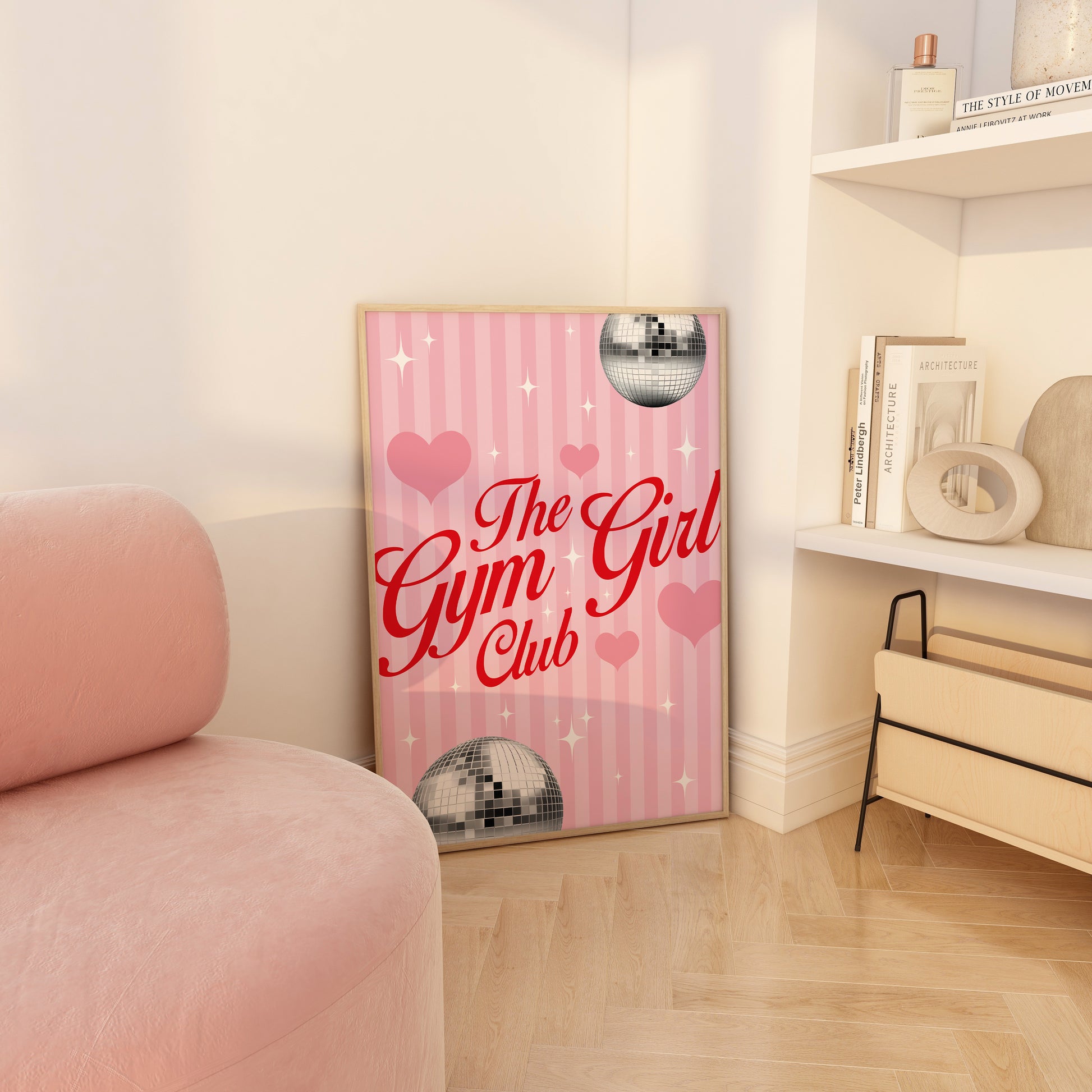 Transform your workout space with this sparkling gym wall art featuring the empowering "The Gym Girl Club". This bold print is perfect for creating a fun and trendy aesthetic in any room, whether it's your fitness space decor, dorm room decor, or your dedicated workout room wall decor.