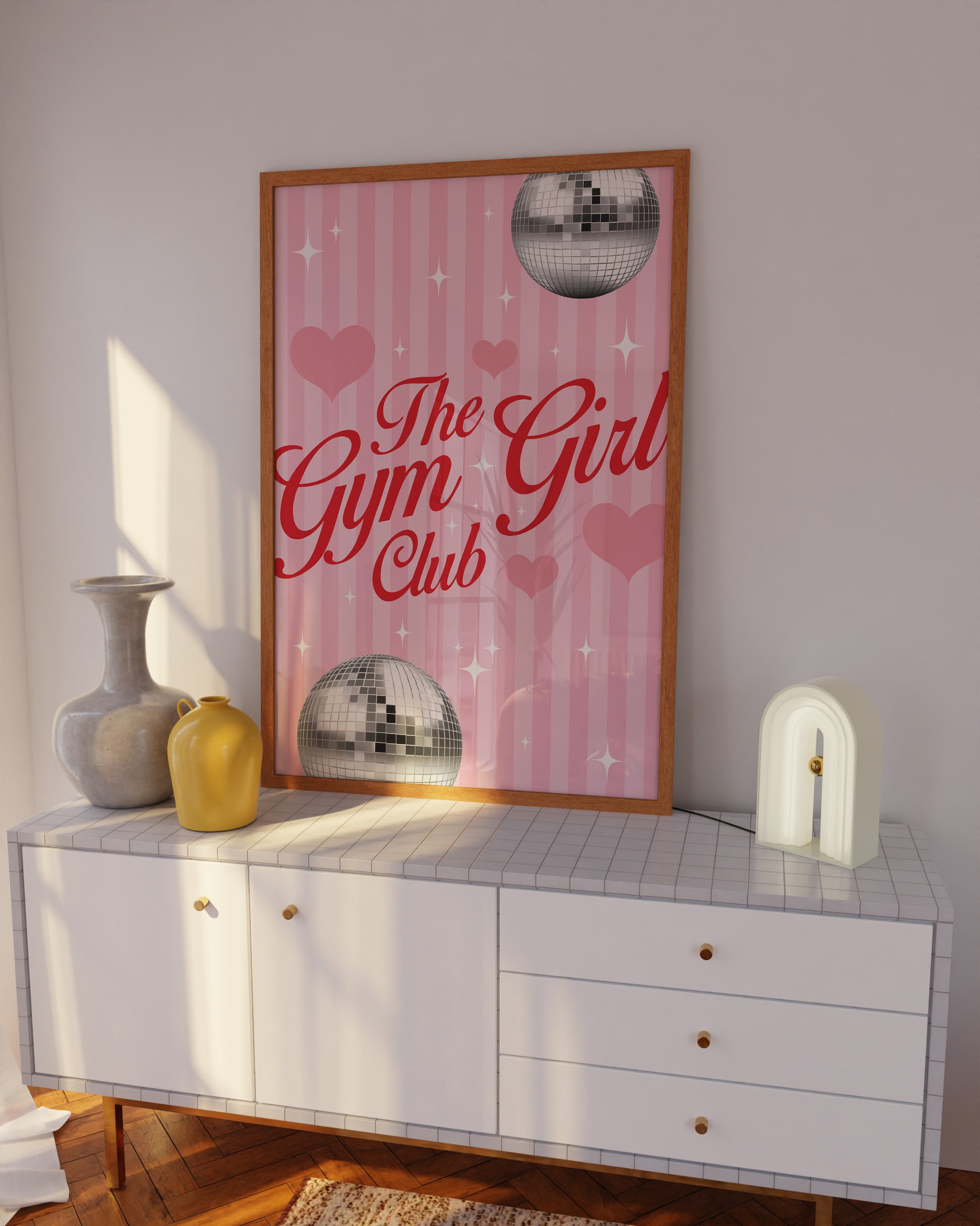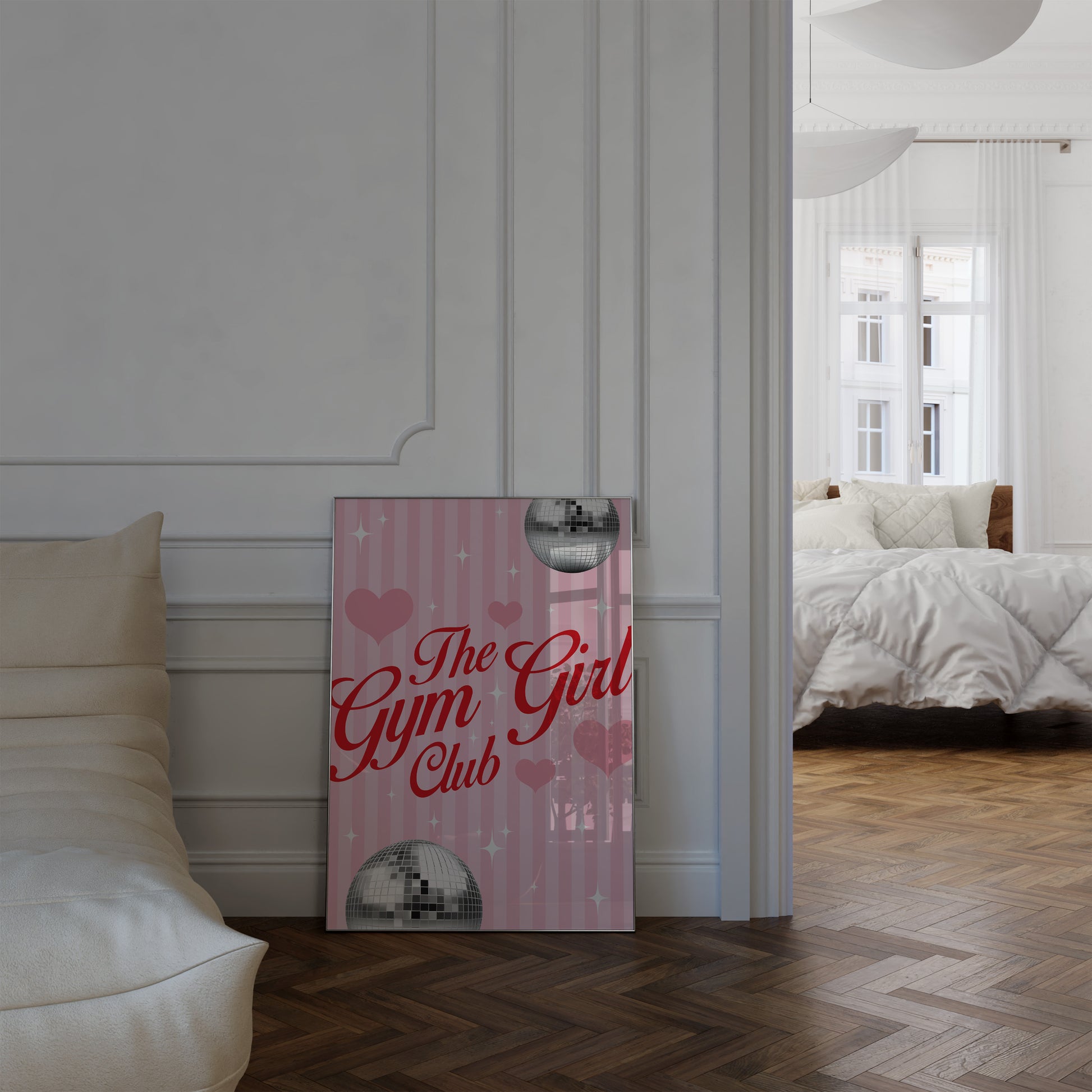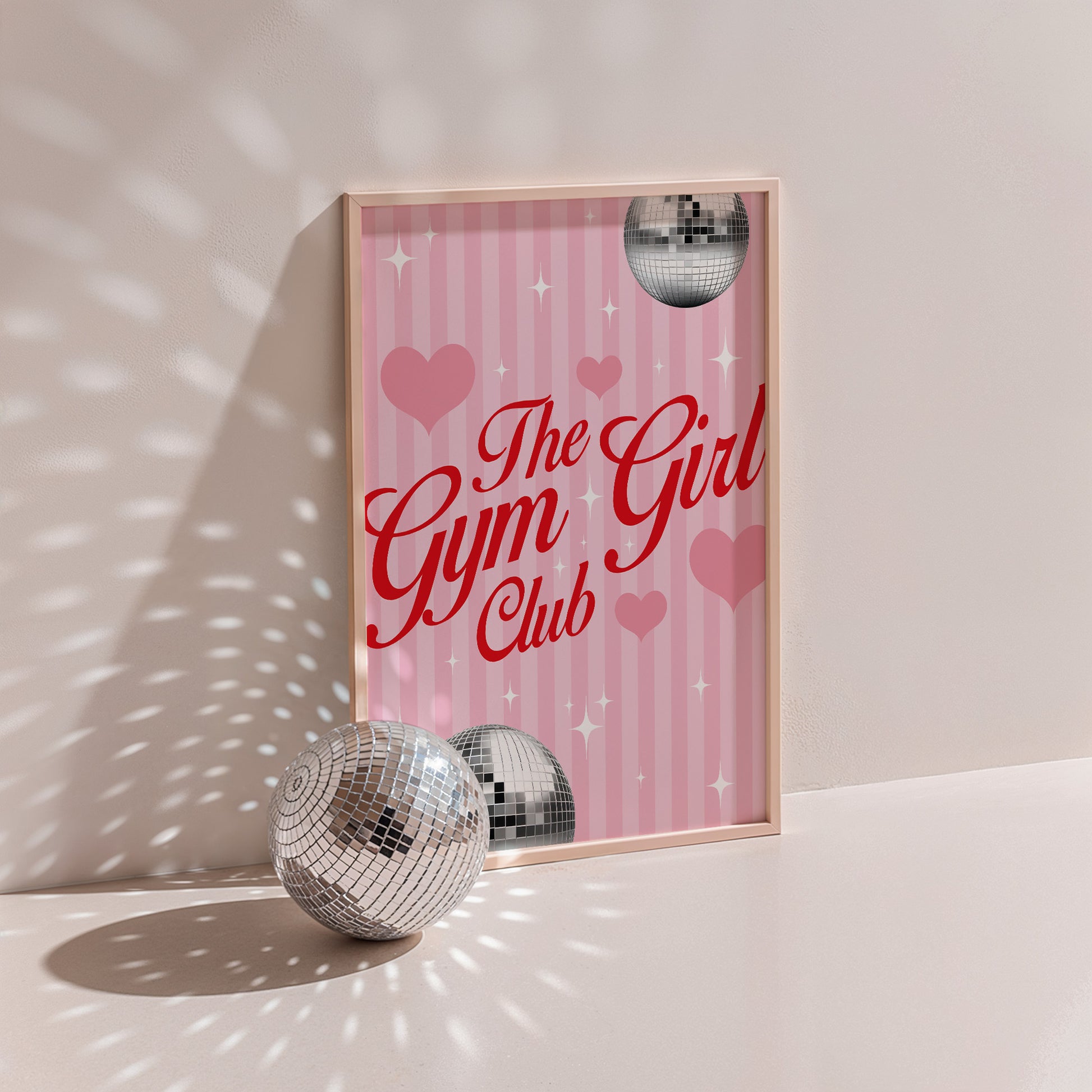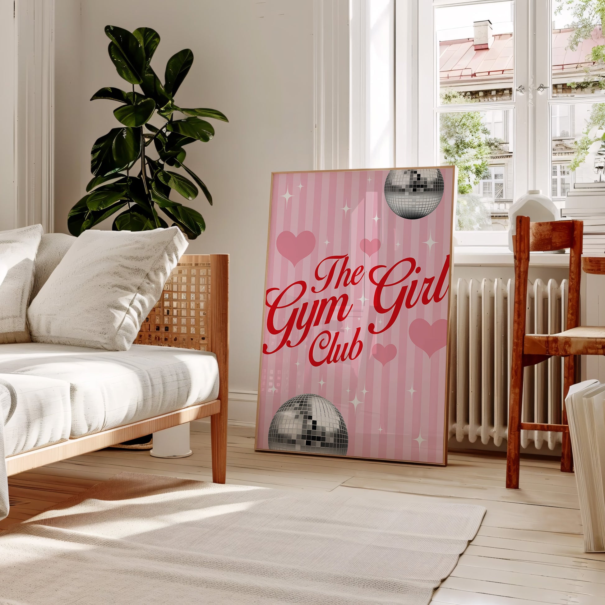 Transform your workout space with this sparkling gym wall art featuring the empowering "The Gym Girl Club". This bold print is perfect for creating a fun and trendy aesthetic in any room, whether it's your fitness space decor, dorm room decor, or your dedicated workout room wall decor.