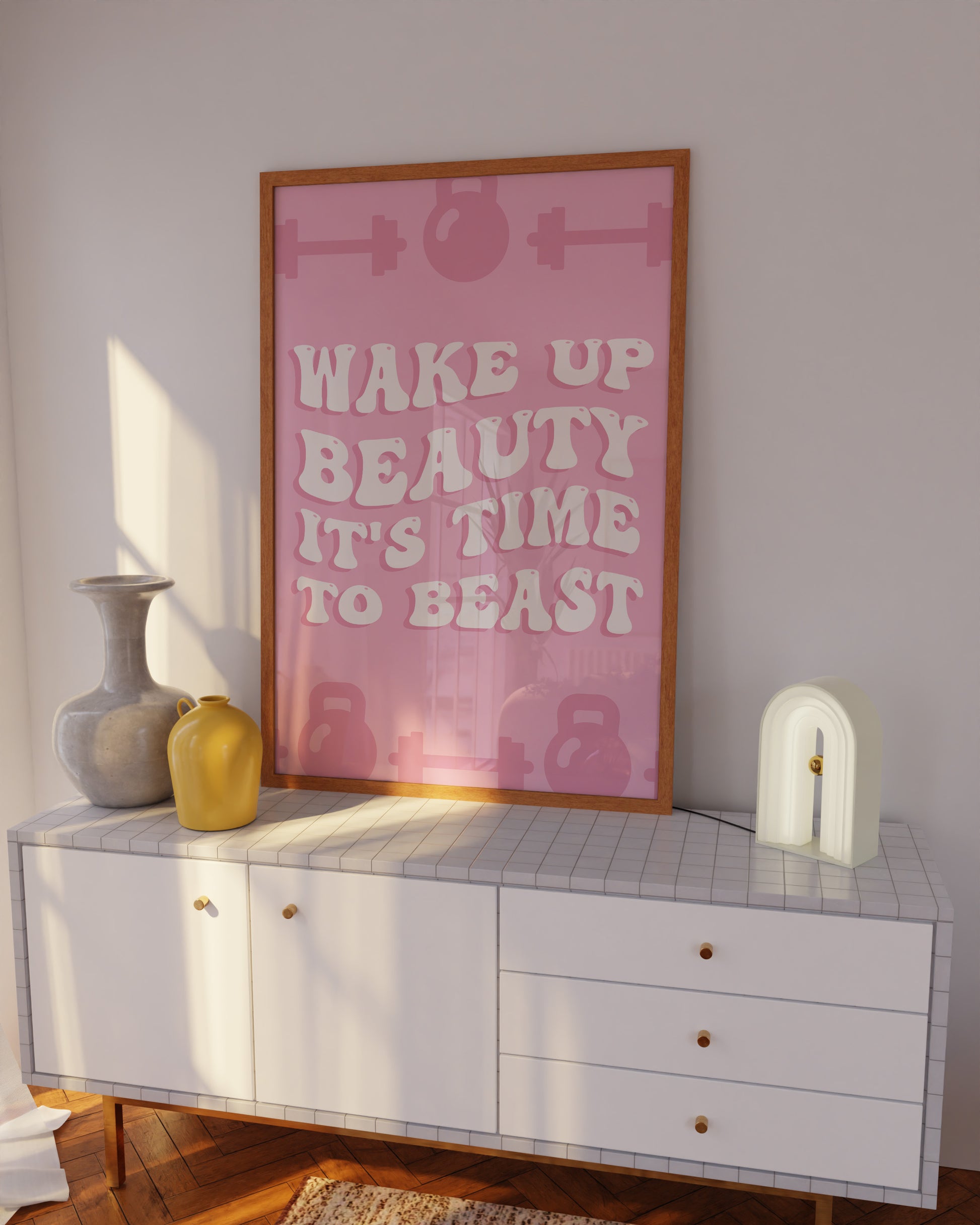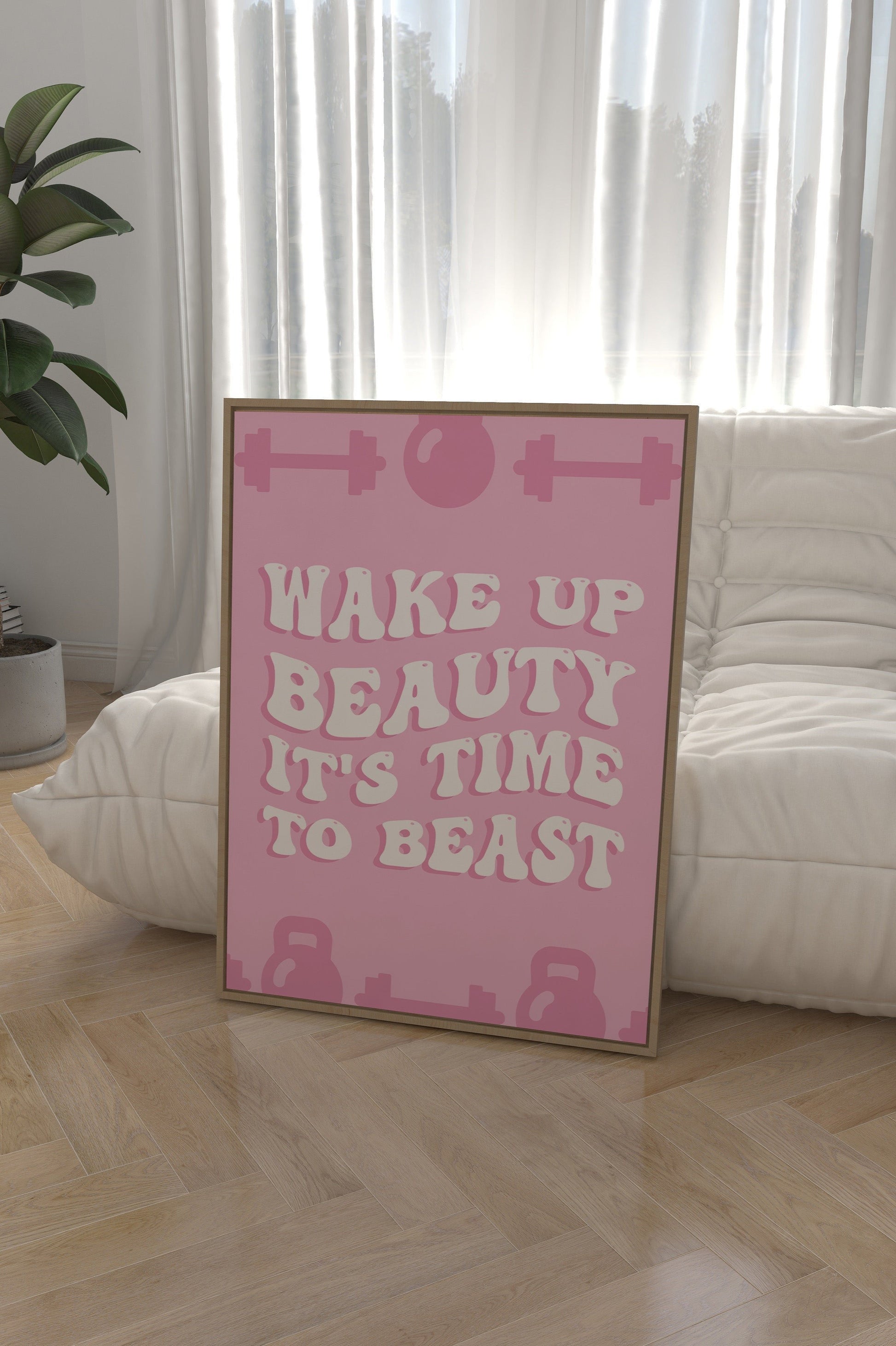 Wake Up Beauty It's Time To Beast Pink Wall Art