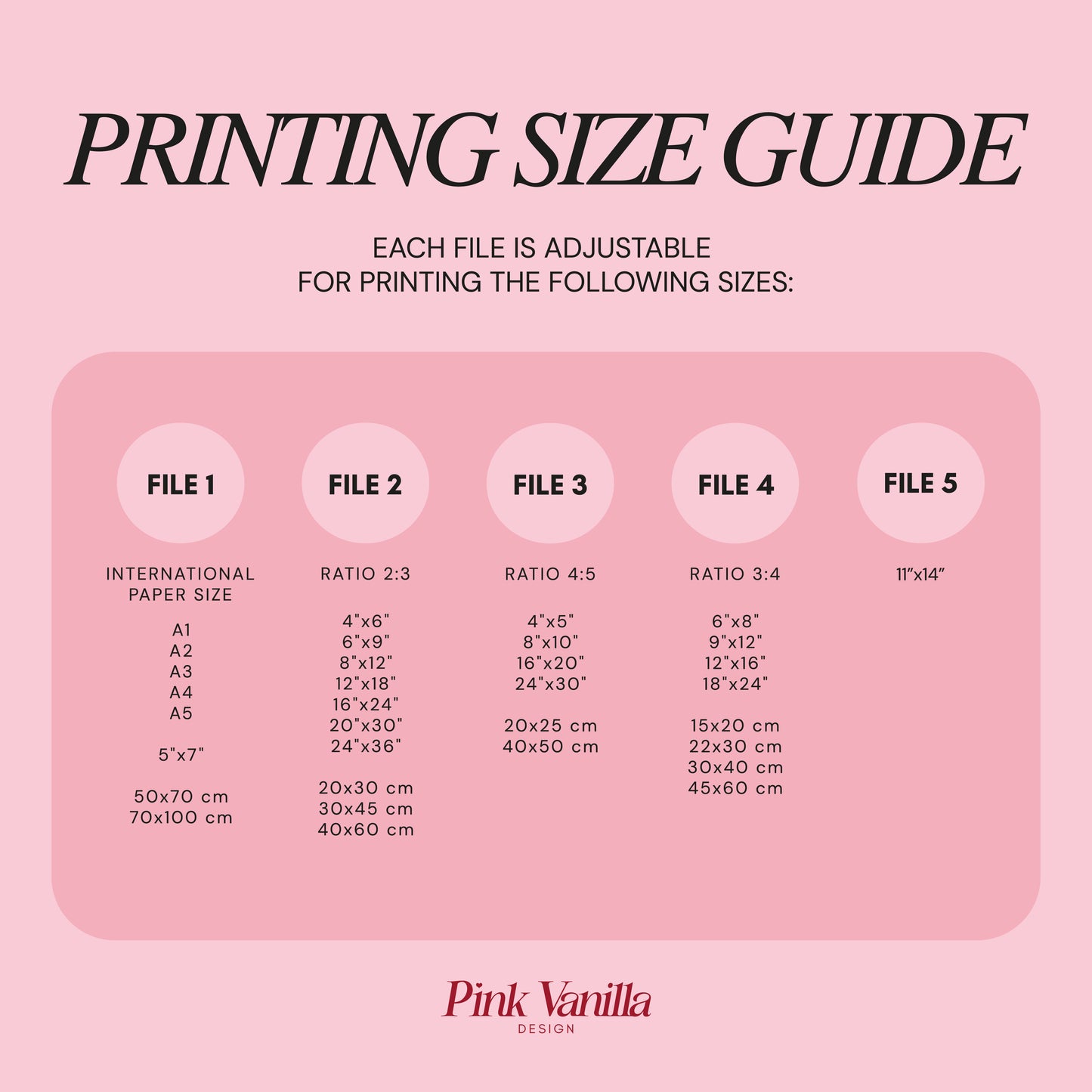 You’ll get 5 high resolution (300 dpi ) JPEG files in the following popular frame sizes: